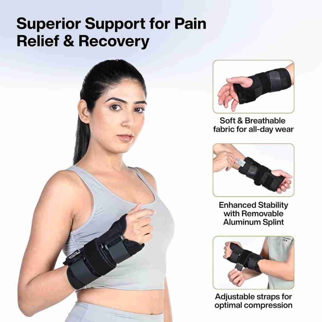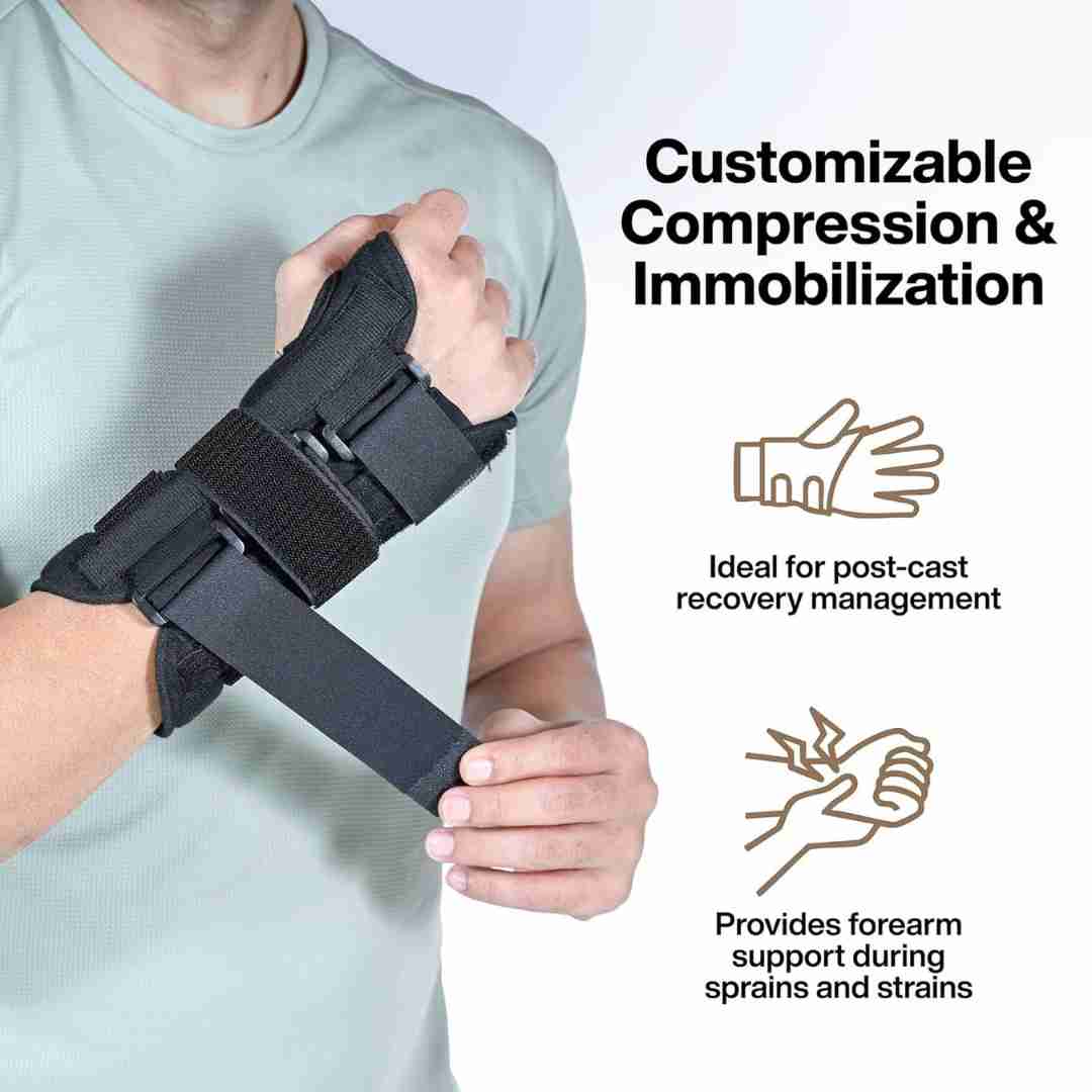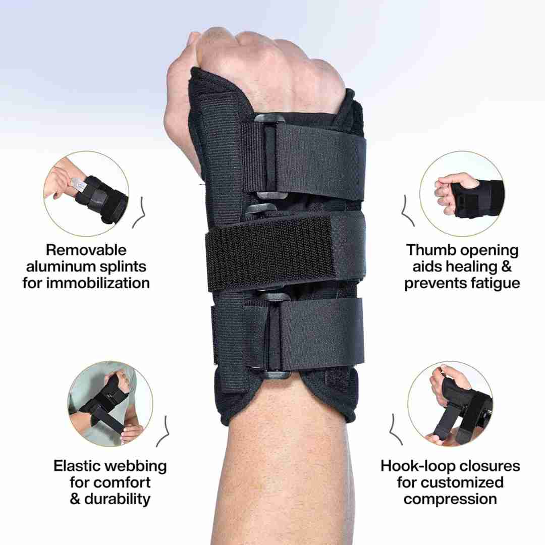 Wrist & Forearm Splint Support Brace for Pain Relief is a highly effective orthopedic aid that provides firm support to the hand and wrist in various conditions. This product is designed to immobilize the wrist in the dorsi-flexion/functional position, while allowing a full range of motion to the fingers and thumb.
